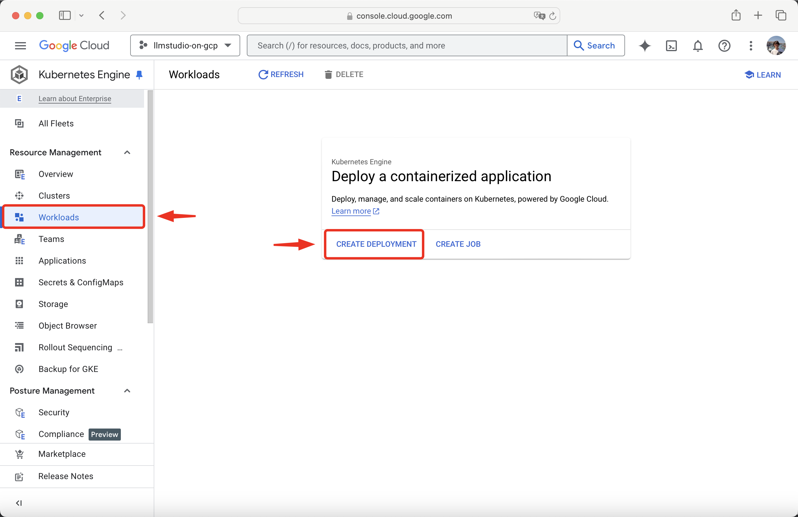 Begin by navigating to the Kubernetes Engine page.